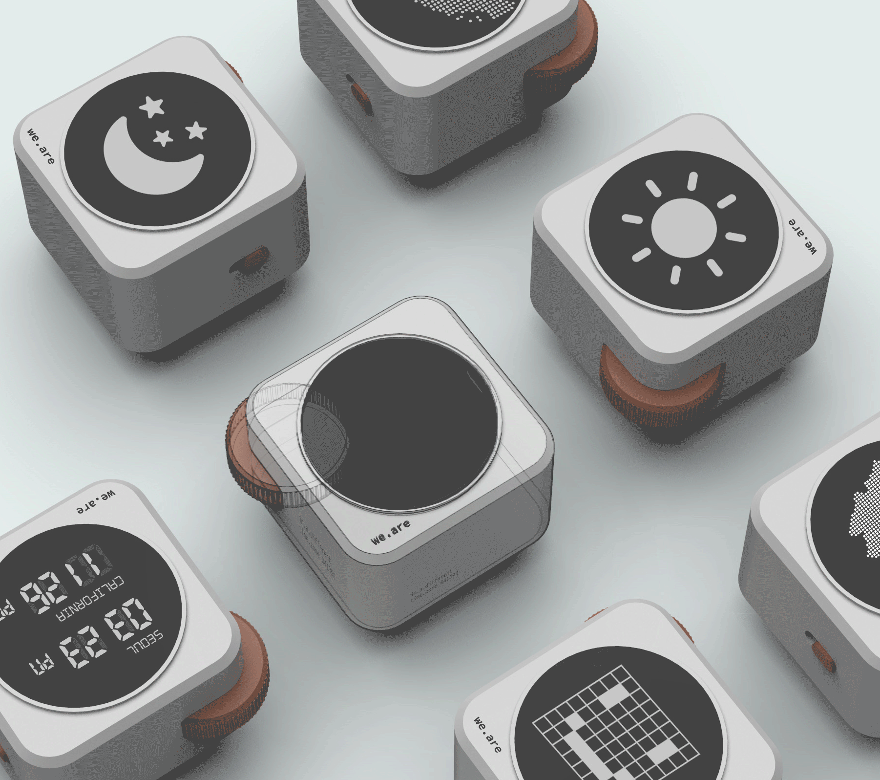 we.are is a personal and ownable world clock for two individuals in different time zones. Living in this globalized world, I find that we constantly try to calculate what time it is for the other side of the world when we plan to make a phone call. I designed to make the time-finding experience enjoyable and unique by celebrating the tactile, analog, haptic interaction of a physical clock. With we.are, I hope users feel still connected, although their physical distance is far away.